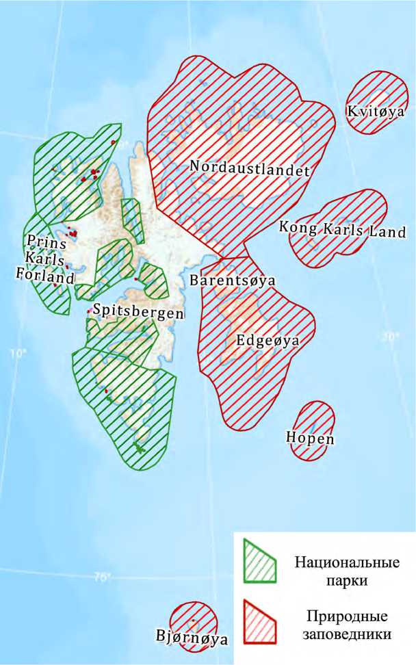 Несмотря на то, что мероприятия по защите диких животных и ужесточению режима охраняемых природных территорий на Шпицбергене являются необходимой мерой по сохранению уникальных арктических экосистем, это один из весьма эффективных инструментов лоббирования национальных интересов Норвегии в регионе. Первые природоохранные территории появились на архипелаге в 1973 г.: были учреждены 15 птичьих заповедников, три национальных парка и два природных заповедника. Вторая большая кампания по созданию охраняемых территорий датируется 20032005 гг., а последнее изменение их площади произошло в 2021 г.: открытый в 2003 г. национальный парк «Земля Норденшельда» был упразднен и заменен значительно более крупным национальным парком «Ван Майен-фьорд» (рис.2).