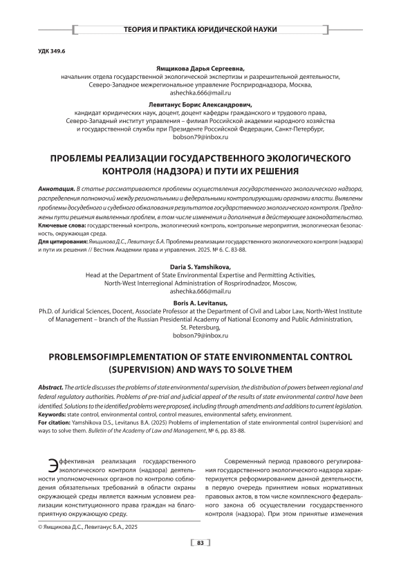 Проблемы реализации государственного экологического контроля (надзора) и пути их решения
