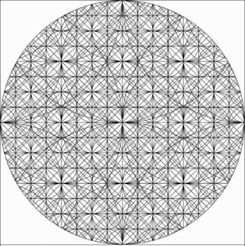 Рис. 3. Графическая реконструкция структуры цветка жизни Fig. 3. Graphical reconstruction of the structure of the flower of life комплекс из тонких, в оптимальном случае нано-размерных, штриховых сложно организованных линий.