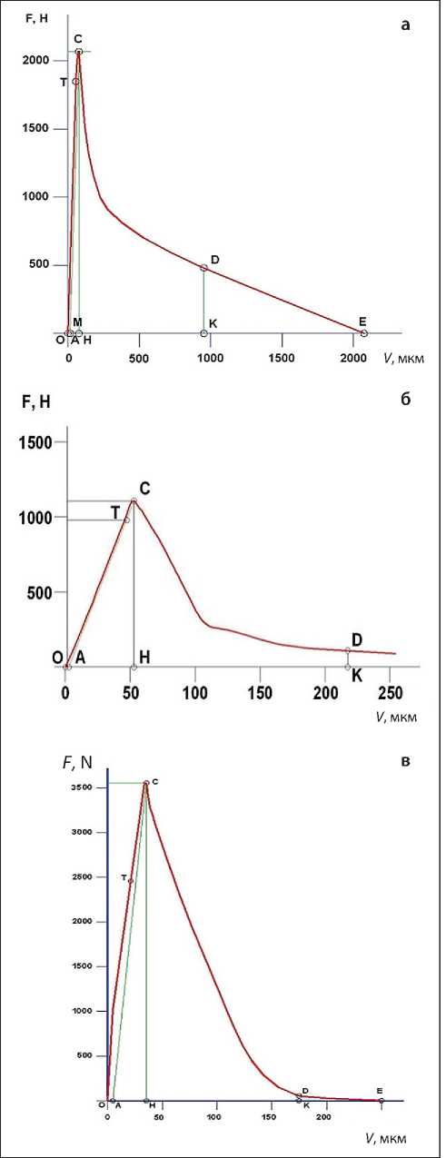 Третий участок F-D: σ F ; ε F ~ σ D ; ε D |