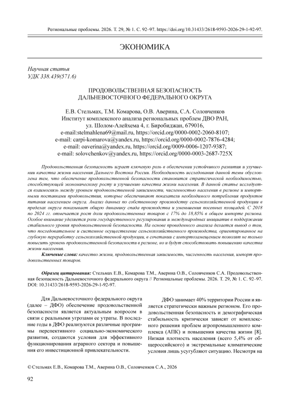 IDR: 143185564 | УДК: 338.439(571.6) | DOI: 10.31433/2618-9593-2026-29-1-92-97