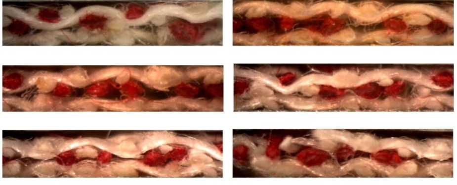Figure 9 – Cross-sections of fabric for different weaving effects