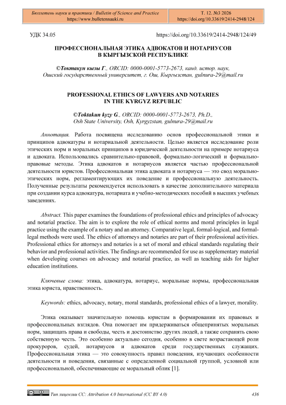 Professional Ethics of Lawyers and Notaries in the Kyrgyz Republic