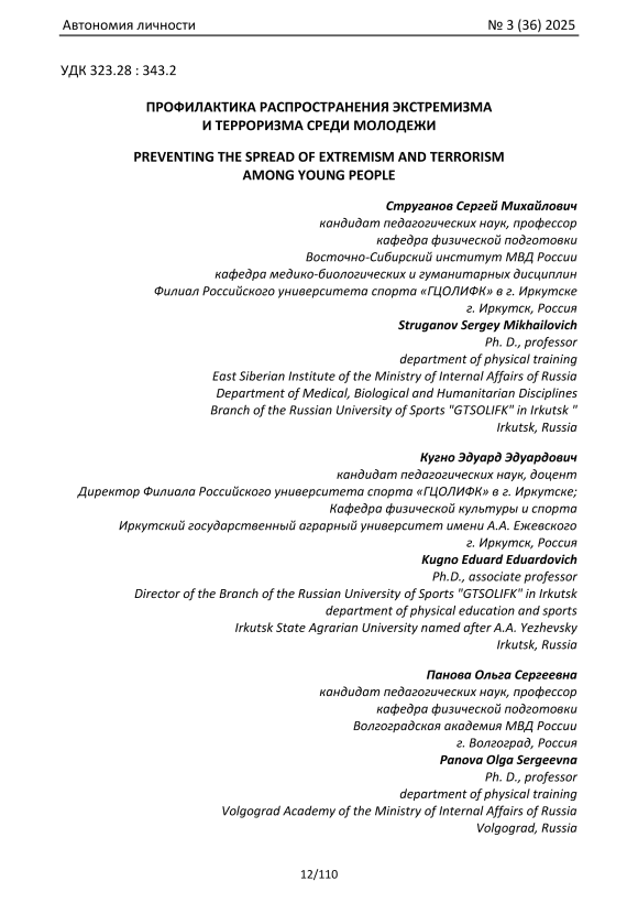 Терроризм, экстремизм, профилактическая работа, молодое поколение, физическая культура, спорт, современное социальное общество, формирование личности