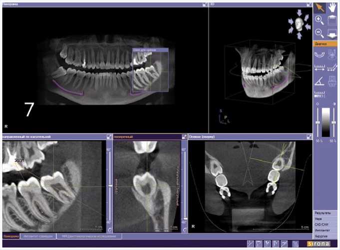В своих клинических исследованиях мы использовали данные конусно-лучевой компьютерной томографии (КЛКТ). Она позволяет оценить анатомические параметры как нижней челюсти, а также положение и размер третьего моляра в трех плоскостях. Определили величину ретромолярного пространства, угол наклона нижних третьих моляров относительно вторых моляров, гониальный угол, топографию и размеры нижнего третьего моляра, толщину кости над коронкой нижнего третьего моляра.
