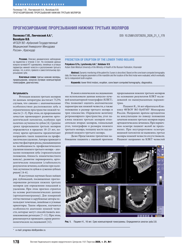 Третьи нижние моляры, прорезывание, конусно-лучевая компьютерная томография, диагностика