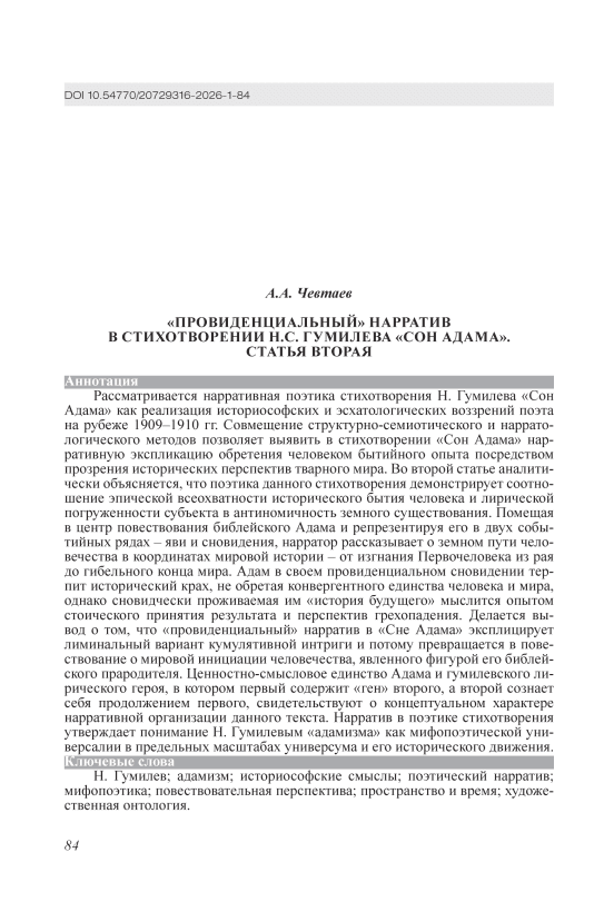 «Провиденциальный» нарратив в стихотворении Н.С. Гумилева «Сон Адама». Статья 2