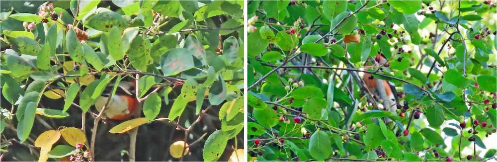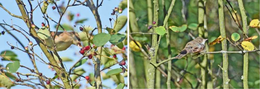 Рис. 20. Серая славка Curruca communis на ирге. Парк Александрино. 16 и 17 июля 2025. Фото автора