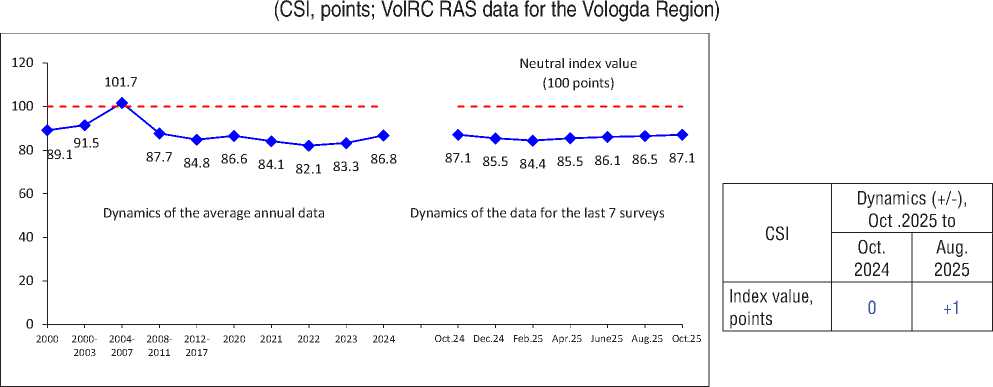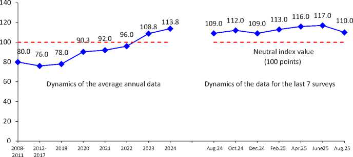 In our opinion, it is important to note that against the background of the general stability of public opinion assessments on the main monitoring indicators, there is a positive trend regarding people’s forecasts about their future. This is indicated by the growth dynamics of the Consumer Sentiment Index (CSI). It is barely noticeable (from February to October – from 84 to 87 points), but it is fixed throughout virtually the entire year 2025.