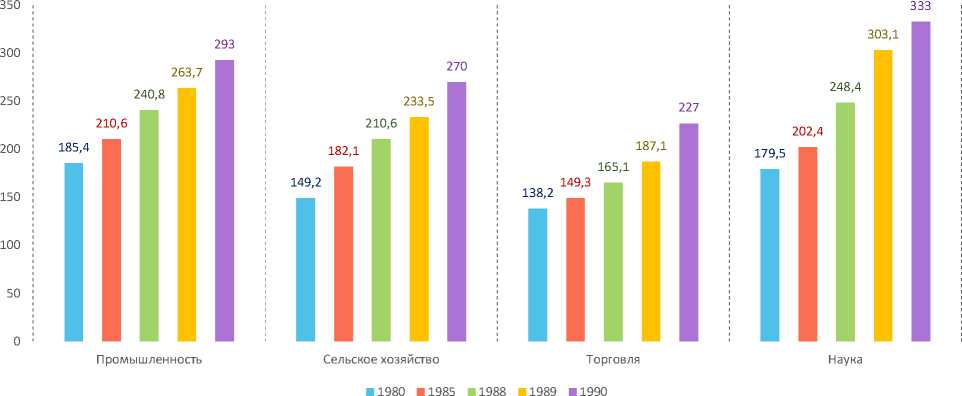 Динамика численности и оплата труда работников торговли в 1980-е гг. в СССР