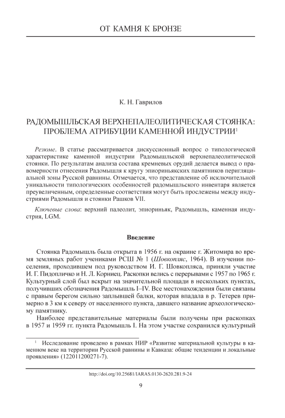 Радомышльская верхнепалеолитическая стоянка: проблема атрибуции каменной индустрии