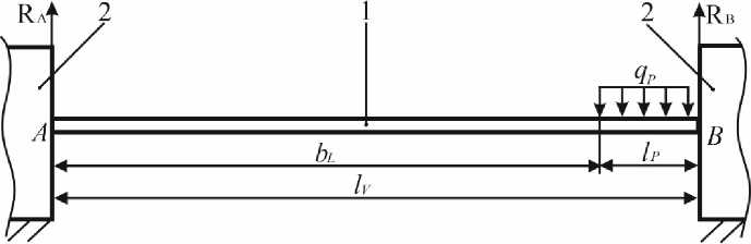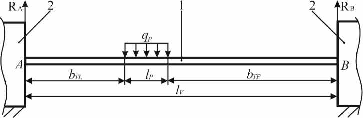 Результаты и обсуждение. В практических условиях при поперечном движении автономного робота по территории теплицы, он может принимать следующие три основные позиции. Первая – левое положение, когда подвижная платформа находится в крайней левой точке относительно продольной оси теплицы, где расстояние от правой стороны левой опорной тележки до левой стороны подвижной платформы оставляет 0 м, а расстояние от левой стороны правой опорной тележки до правой стороны подвижной платформы оставляет bP м. Вторая – текущее положение, когда расстояние от правой стороны левой опорной тележки до левой стороны подвижной платформы оставляет bTL м, а расстояние от левой стороны правой опорной тележки до правой стороны подвижной платформы соответствует bTP м. Третья – это правое положение, когда подвижная платформа находится в крайней правой точке относительно продольной оси теплицы, где расстояние от левой стороны правой опорной тележки до правой стороны подвижной платформы оставляет 0 м, а расстояние от правой стороны левой опорной тележки до левой стороны подвижной платформы равно bL м. На основании сказанного построены схемы нагрузки ходового винта от действия поперечной силы для каждой позиции, которые представлены на рисунке 1, где точка А – точка опоры ходового винта на левую опорную тележку, а точка В – точка опоры ходового винта на правую тележку; RA и RB – реакции опор соответственно в точках А и В. При этом подвижная платформа длиной lP (м) создает погонную нагрузку qP (Н/м) на ходовой винт, длина которого составляет lV , м.