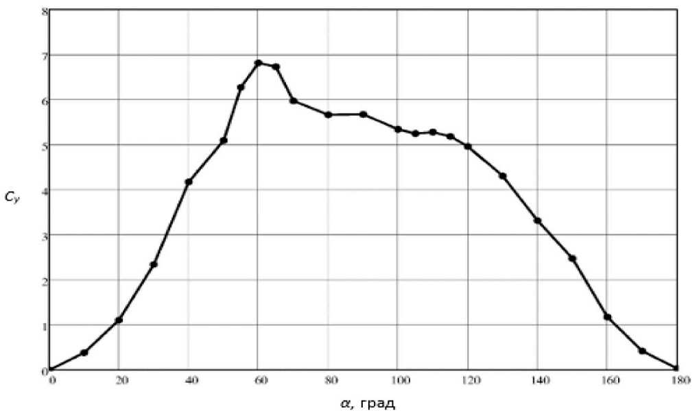 Ввиду осесимметричности конструкции коэффициент бокового сопротивления принимается равным коэффициенту подъемной силы.