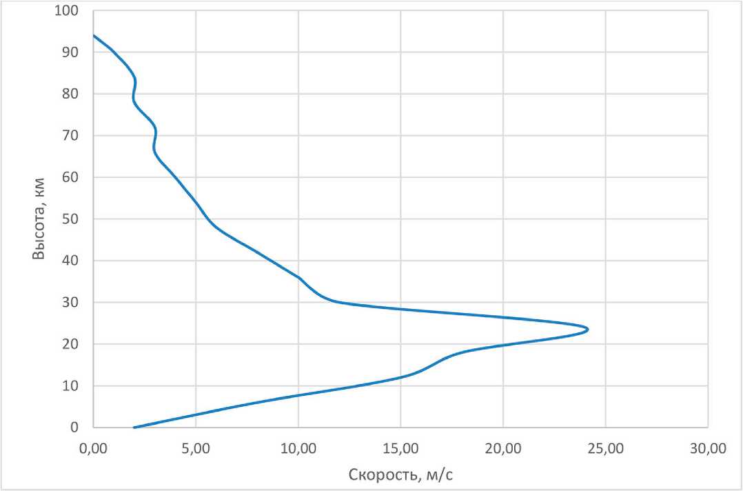 Рисунок 12. Зависимость скорости ветра на космодроме «Восточный» от высоты полета [10]