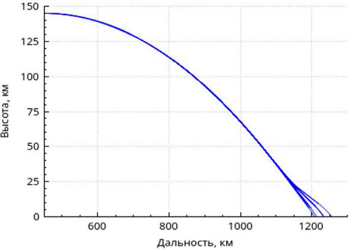 При формировании районов падения используются принимаемые в ракетостроительной практике отклонения блока (±75 км – продольное рассеивание, ±50 км – боковое рассеивание).