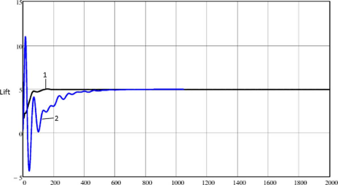 Как известно, решение стационарной задачи гидрогазодинамики в программе Fluent выполняется методом последовательных приближений (итераций). На рисунке 6 показаны зависимости коэффициента нормальной силы от числа итерации для одного из значений угла атаки (α = 120°), где меткой 1 обозначены кривые, полученные при использовании решателя Pressure-Based , а меткой 2 – кривые, рассчитанные на базе решателя Density-Based . Как видно, наблюдается достаточно хорошая сходимость и хорошее совпадение двух решений.
