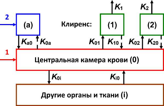 Математическая интерпретация данной камерной модели в рамках химической кинетики первого порядка [14] сводится к следующей системе линейных дифференциальных уравнений с постоянными коэффициентами: