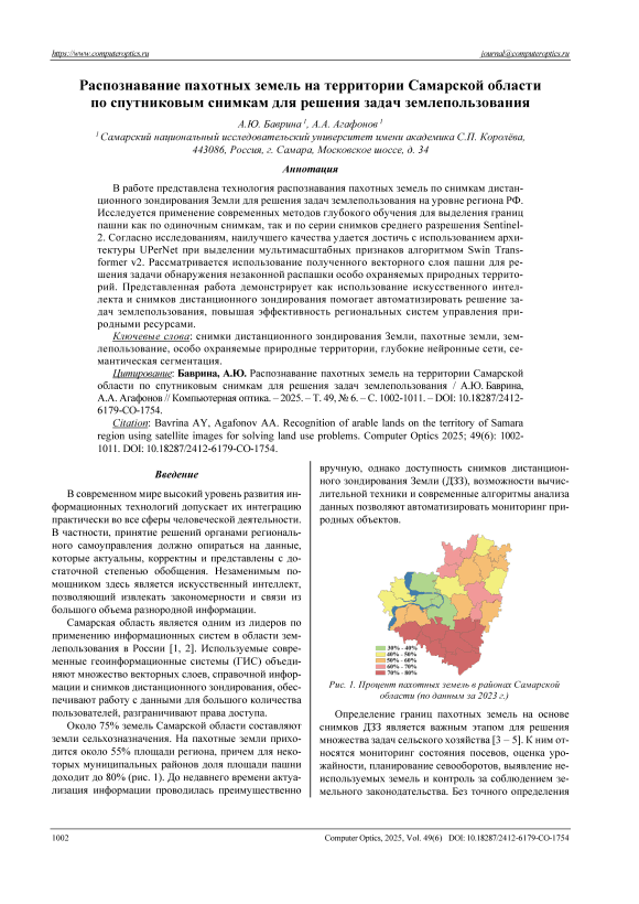 Распознавание пахотных земель на территории Самарской области по спутниковым снимкам для решения задач землепользования