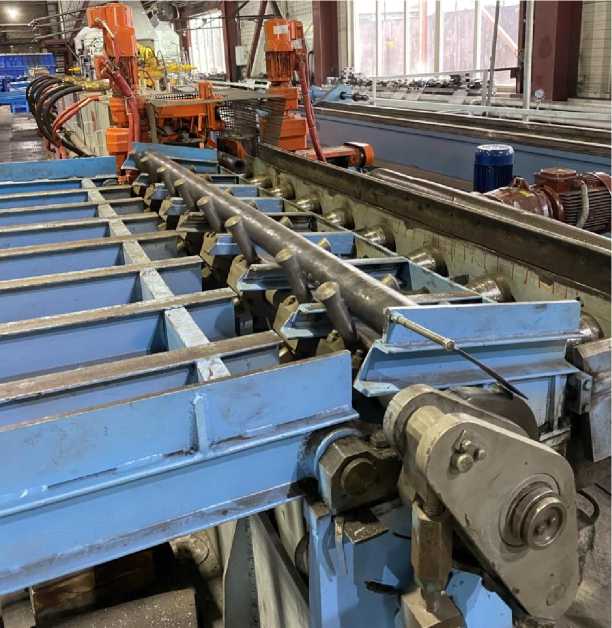 Дополнительные поворотные рольганги 12 позволили связать линии методического и индукционного нагрева, а также входные и выходные стороны РКМ SKK-14. Вид на поворотные рольганги представлен на рис. 4.