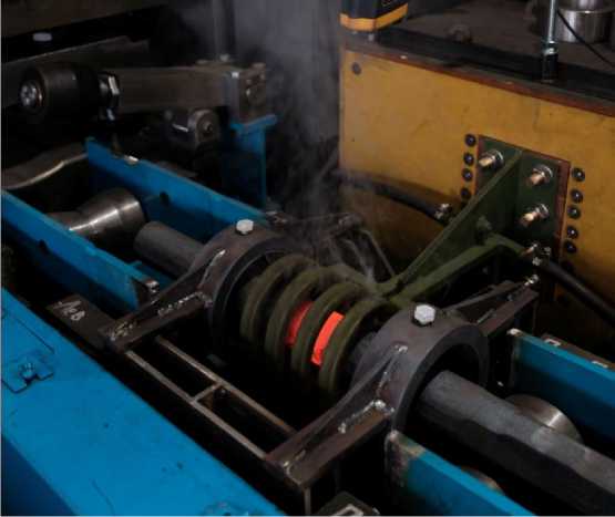 Рис. 8. Вид на установку локального нагрева во время нагрева части длины заготовки в месте поперечного реза Fig. 8. View of the local heating unit during heating of a part of the length of the workpiece at the place of the cross cut