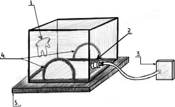 Fig. 3. ELNPAT device diagram: 1 – ultrasound access port; 2 – connector; 3 – pressure control unit; 4 – sealing cuffs (made of biocompatible elastomer); 5 – thermostabilized surface