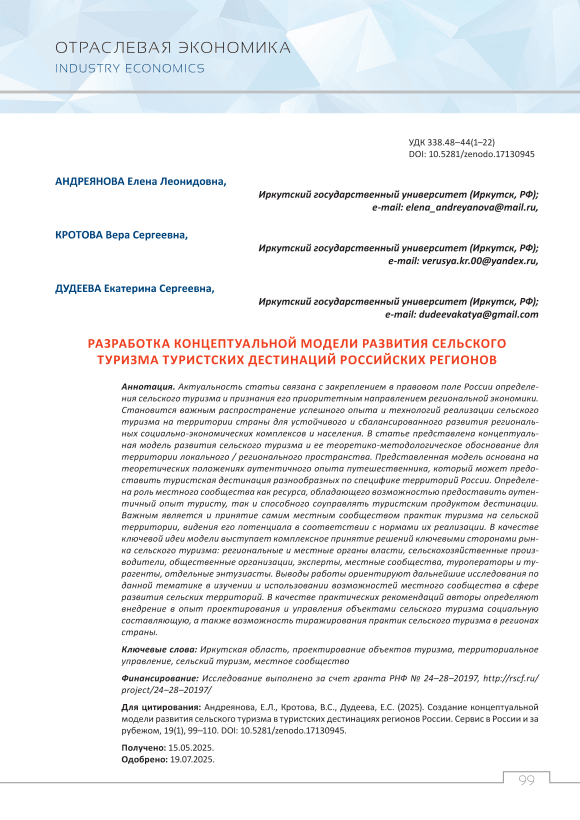 Разработка концептуальной модели развития сельского туризма туристских дестинаций российских регионов