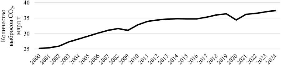 Рис. 1. Мировое количество выбросов диоксида углерода в период с 2000 по 2024 год Fig. 1. Global carbon dioxide emissions from 2000 to 2024