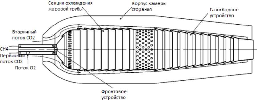 Рис. 2. Кислородно-топливная камера сгорания [13]
