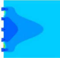 По результатам моделирования процессов горения конструкции № 3, представленным на рис. 11, можно сделать вывод, что из-за умень-
