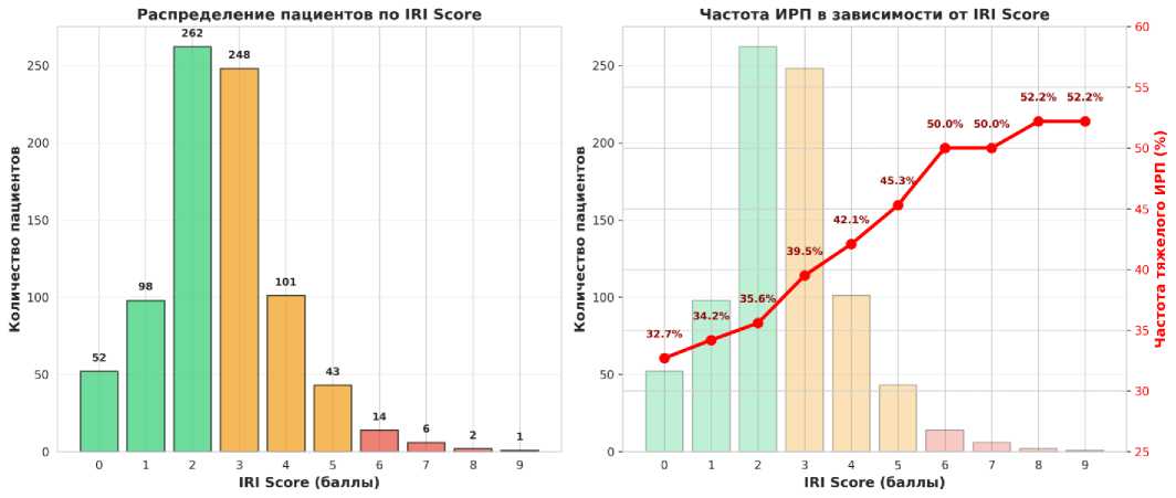 Рисунок 2. Распределение пациентов по выраженности ИРП в зависимости от значения IRI score