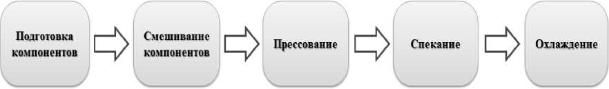 Рис. 1. Этапы технологического процесса изготовления образцов методом холодного прессования и высокотемпературного спекания