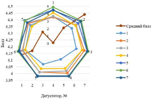 Более наглядно отражает результаты дегустационной оценки образцов лепестковая диаграмма (рисунок 3).