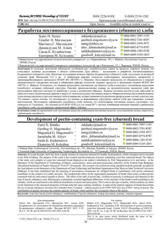 Khatko Z.N. et al. Proceedings of VSUET, 2025, vol. 87, no. 4, pp. 20-28