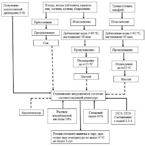 Рисунок 1. Технологическая блок-схема получения безалкогольных коллагенсодержащих напитков функционального назначения