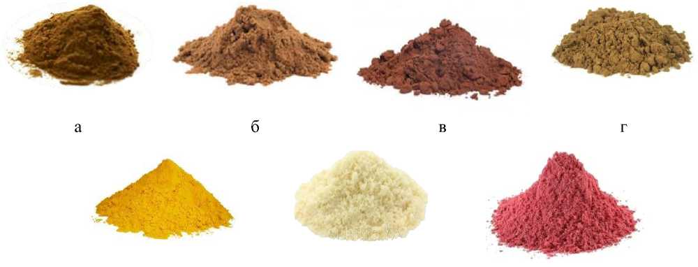 Рисунок 1 – Функциональные компоненты для сухого напитка из сырья растительного и животного происхождения Байкальского региона: а - экстракт из листьев облепихи; б - экстракт из листьев черной смородины; в - экстракт из листьев иван-чая; г - экстракт из травы чабреца; д - экстракт из ягод облепихи; е - концентрат сывороточных белков (КСБ-Mg);