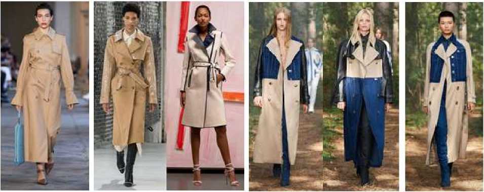 Современные дизайнеры предлагают разбирать верхнюю одежду на отдельные элементы, которые можно комбинировать между собой и формировать каждый день новые образы. Можно создать свой уникальный тренчкот с помощью выбора оттенков рукава, корпуса, воротника или ремня.