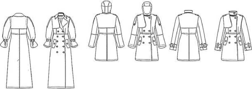 Тренчкот обладает рядом узнаваемых модельных и конструктивных особенностей. Видоизменение привычных потребителю деталей может способствовать получению оригинального внешнего вида изделия без утраты при этом универсальности модели. Съемные детали плаща в дальнейшем могут быть заменены на более современные, и оставаться в трендах сезонов потребителю станет проще и комфортнее по цене.