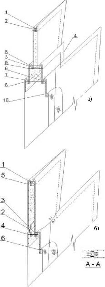 Для изготовления трансформирующихся плащей разработана технология изготовления съемных стояче-отложных воротников и съемных капюшонов. Базовым в таком изделии является воротник-стойка. Соединение деталей осуществляется при помощи тесьмы-молнии. Варианты обработки представлены на рисунке 7. Капюшон имеет вшитую магнитную кнопку, что послужит более простому застегиванию.