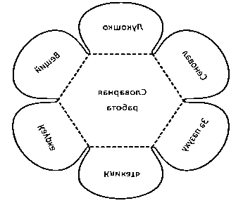 На рисунке 1 представлен шаблон страницы с лепестками, на котором ведётся работа с устаревшими словами. На центральном листе приведены устаревшие слова, а на лепестках – их современное значение. В таком формате словарную работу можно провести по любому произведению.