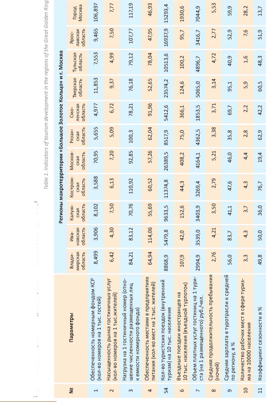 Табл. 1. Показатели развития туризма в регионах Большого Золотого Кольца