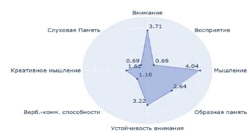 Для обучения нейронной сети был подготовлен датасет, состоящий из данных, полученных в ходе целенаправленного тестирования студентов, с помощью специализированных психологических тестов для определения когнитивных способностей человека. Перед обучением данные были нормализованы с применением метода логарифмической нормализации. Выбор такого метода обусловлен тем, что данные имеют большой разброс, а логарифм успешно приводит их к единой шкале.