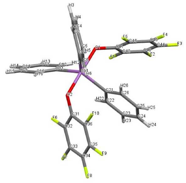 Рис. 2. Строение комплекса Ph 3 Sb[OC 6 F 5 ] 2 (2)