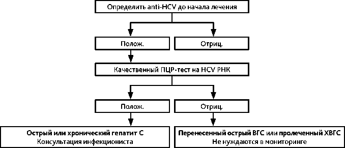 Понятия «реактивация вирусного гепатита С» (или обострение вирусного гепатита С), также как и «профилактическая противовирусная терапия» у пациентов с ВГС и онкологическим заболеванием не существует. Перед назначением противоопухолевой терапии наряду с маркерами ВГВ и ВИЧ-инфекции и печёночными биохимическими тестами следует исследовать суммарные антитела к ВГС (анти-HCV IgM + G). При положительном результате необходима консультация инфекциониста для решения вопроса противовирусной терапии. Она может применяться одновременно с иммуносупрессивными препаратами при условии лекарственной совместимости.