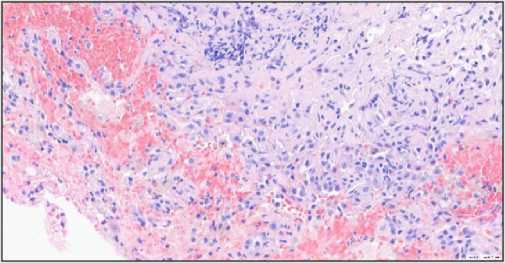 Мужчина 26 лет заболел остро, с жалобами на кашель, заложенность в груди, тяжесть при дыхании, повышение температуры тела до 38,5ºС, обратился к терапевту в частную клинику, где был поставлен диагноз острой вирусной инфекции и назначена противовирусная и антибактериальная терапия. Экспресс анализы на коронавирусную инфекцию и грипп были отрицательными. Несмотря на лечение, состояние больного не улучшалось. По рекомендациям врача-терапевта была выполнена КТ органов грудной клетки, где отмечались признаки объемного образования правого и левого легкого (лимфома? метастазы?), медиастинальная лимфаденопатия. Для дальнейшего обследования пациент госпитализирован в торакальной отделение №39 ГБУЗ «ММНКЦ им. С.П. Боткина». На момент поступления у больного отмечалось легочное кровотечение с явлениями острой кровопотери. Для купирования легочного кровотечения проводилась гемостатическая терапия с трансфузиями эритроцитными массами. пациент при этом находился в ясном сознании.