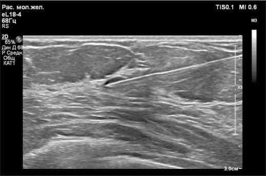 Fig. 5. Ultrasound image of the needle’s location in the projection of the tumor. Note: created by the authors