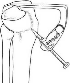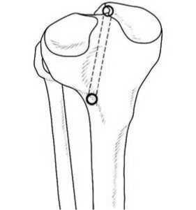 Рисунок 3. Схема формирования транстибиального канала через наружный мыщелок большеберцовой кости.