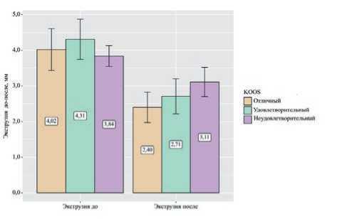 Анализ экструзии до операции и через 1 год после операции