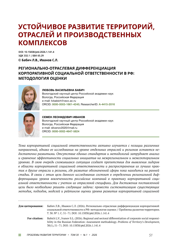 Регионально-отраслевая дифференциация корпоративной социальной ответственности в РФ: методология оценки