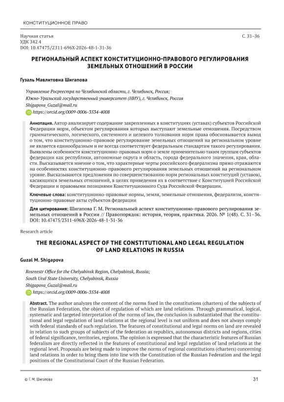 IDR: 14134590 | УДК: 342.4 | DOI: 10.47475/2311-696X-2026-48-1-31-36