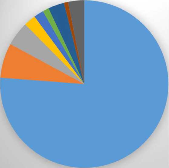 Из гистологических форм РМЖ (рис. 2) преобладал инфильтративный протоковый рак (197 случаев, 76,3 %), инфильтративный протоковый рак с преобладанием внутрипротокового компонента (12 случаев, 4,7 %), инфильтративный дольковый рак в 17-ти случаях (6,6 %), рак Педжета в трех случая (1,2 %), DCIS в шести случаях (2,3 %), LCIS в пяти случаях (1,9 %), единичные случаи редких форм рака (рак с метаплазией, медуллярный рак, секреторный рак, тубулярный рак, апокринный рак, саркома) в восьми случаях (3,1 %). В двух случаях (0,8 %) морфологическая верификация диагноза не выполнена по техническим причинам. В III группе по результатам планового гистологического исследования удаленного операционного материала во всех случаях получена морфологическая картина фиб- розно-кистозной мастопатии с очагами пролиферации и апокринизации эпителия протоков, склерозирующего аденоза, фиброаденом МЖ смешанного строения.